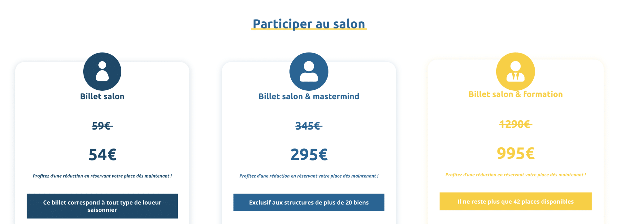 Il existe 3 types de billets pour assister au Rendez-Vous National de la Location Saisonnière. Chaque type de billet répond à des besoins spécifiques.